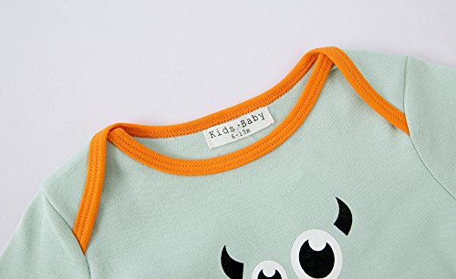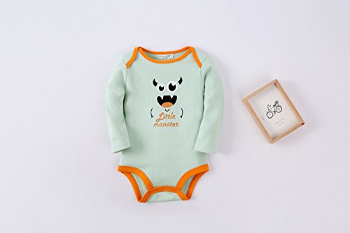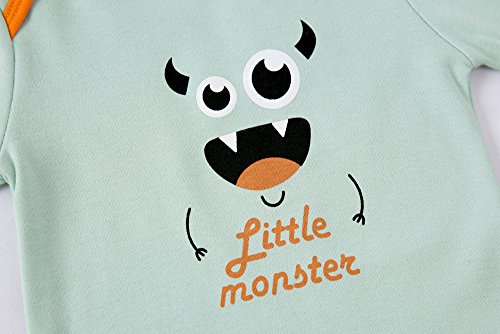 ベビー服 ロンパース ベビーウェア 出産祝い ノースリーブ ボディスーツ 男の子 タキシード風 長袖 新生児 (0-6m, R03 緑 怪獣)
