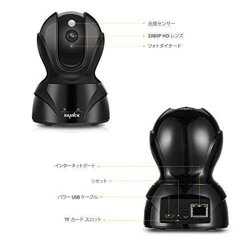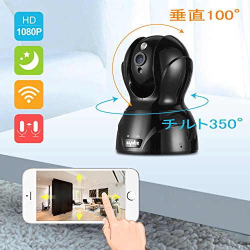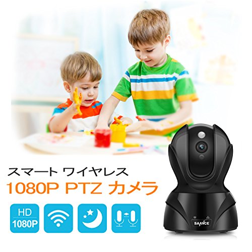 SANNCE 1080P ワイヤレス防犯カメラ WiFi 無線 MicroSDカード録画 200万画素 LANケーブル必要なし 電源繋ぐだけ 簡単設定 動体検知 警報機能 双方向音声 遠隔操作 暗視機能 室内型ペット/子供/老人/猫犬ペット等留守番