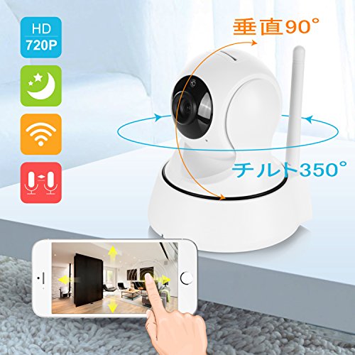 SANNCE ネットワークカメラ IPカメラ ワイヤレスカメラ 720P 100万画素 ベビーモニター 老人介護 留守安心 防犯カメラ 監視カメラWiFi対応 暗視撮影 マイク内蔵・音声双方・通話可 首振り式 モーション機能 ペット・子供見守り ウェブカメラ