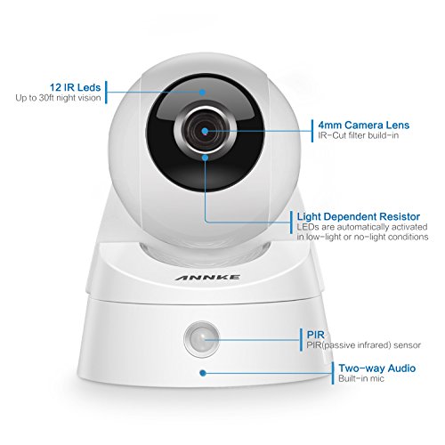 ANNKE(アンカ) 1080P 200万画素 高解像度 ネットワークカメラ WIFI カメラワイヤレスIPカメラ ベビーモニター 監視カメラ WIFI対応 暗視撮影 マイク内蔵 音声双方通信可能 動体検知 アラーム機能 ペット/子供見守り
