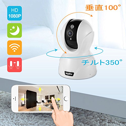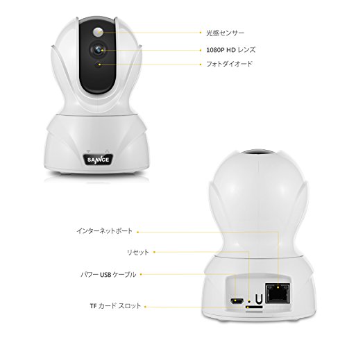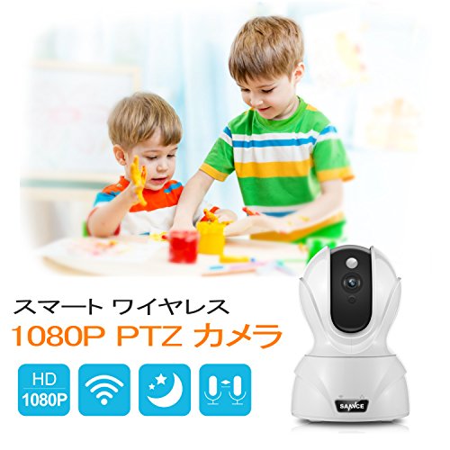 SANNCE 小型ワイヤレスカメラ 1080P 200万画素 wifi対応 ネットワークカメラ 動体検知 警報機能付き マイク搭載双方向音声・通話可 暗視撮影 PTZ首振り式 遠隔操作 屋外屋内兼用 子供見守り 留守安心 スマホ対応可