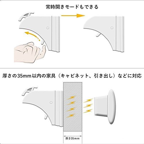 - 【目立たないデザイン&多種の家具が対応】キャビネッド、引き出しなどの内側に取り付けて、子供達に発見されにくいです。それに、家具の外見を損なわないで、綺麗なままにしています。キャビネット、引き出し、タンス、戸棚、食器棚など厚さ35mm以内適用します。