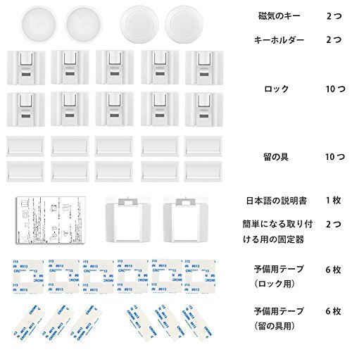 ベビーガード 安全磁気キャビネットロック(10ロック と 2キー と 2固定器)SANSEA 日本語説明書付き ストッパー 引き出し タンス 食器棚など対応 取り付ける簡単 ケガ防止 子供赤ちゃん守る 地震対策 白