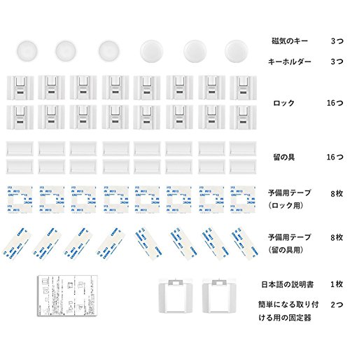 ベビーガード 引き出しロック(16ロック と 3キー と 2固定器)SANSEA 日本語説明書付き 安全磁気キャビネットロック ストッパー 引き出し タンス 食器棚など対応 取り付ける簡単 ケガ防止 子供赤ちゃん守る 地震対策
