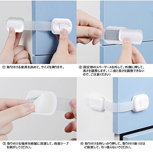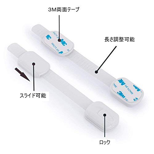 - 【簡単に操作できる】ネジなどのツールが必要なく、日本語説明書も付きで、指示に従って両面テープで貼るだけの簡単取り付けです。取り付け後片手で簡単に開け閉めできます。赤ちゃんにとっては引き出しなども開けにくい仕組みになります。
