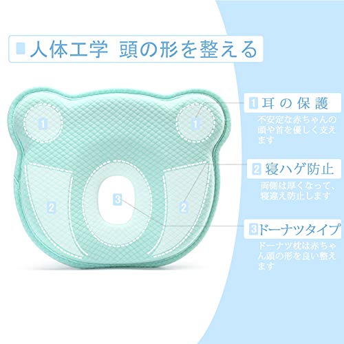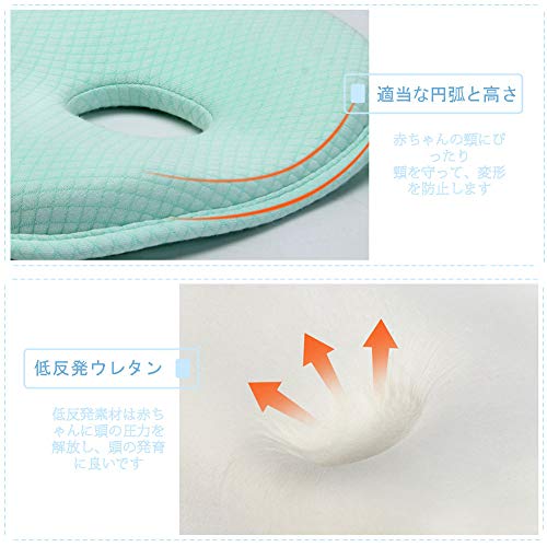 - 【頭の形を良くする】ドーナツ型の低反発クッションでしっかり支えます。0~12月に適用し、赤ちゃんにぴったり高さで、頭の形をととのえ、絶壁頭と寝ハゲなどを防止できます。赤ちゃんの健康を考えつくした枕です。