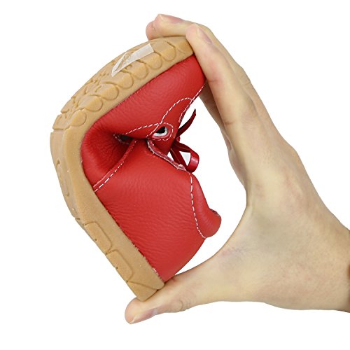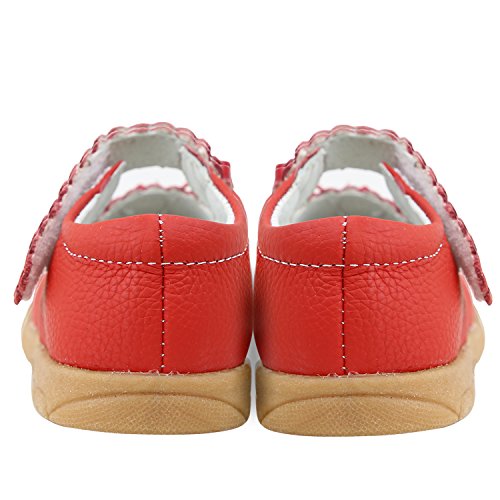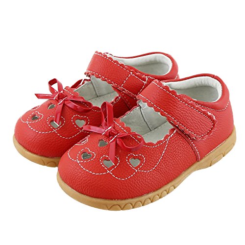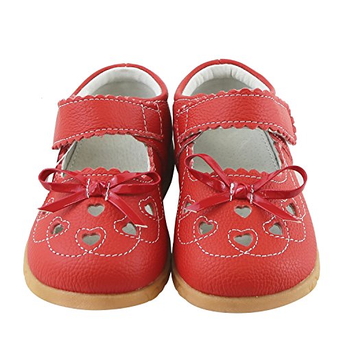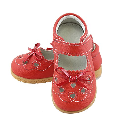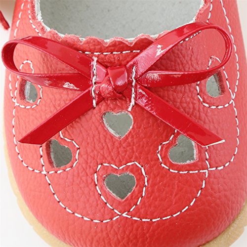 SSJH ベビーシューズ 子供シューズ キッズ靴 女の子 ガールズ フォーマル 本革 13サイズ 耐磨 軽量 滑り止め 可愛 素敵 おしゃれ リボン 蝶結び ハート 夏 通園 通学 七五三 結婚式 発表会 お出かけ レッド