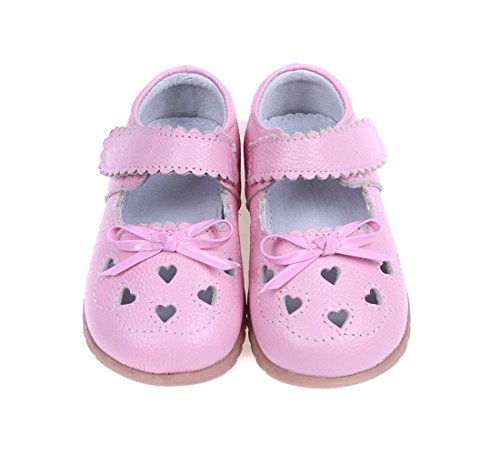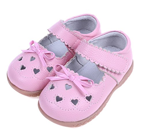 SSJH ベビーシューズ 子供シューズ キッズ靴 女の子 ガールズ フォーマル 本革 13サイズ 耐磨 軽量 滑り止め 可愛 素敵 おしゃれ リボン 蝶結び ハート 夏 通園 通学 七五三 結婚式 発表会 お出かけ ピンク
