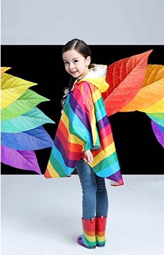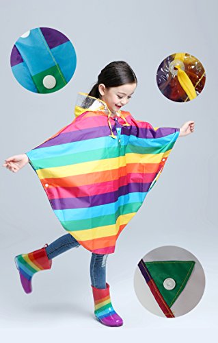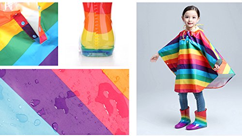 SANTAT 虹がかわいい おしゃれ キッズ レインコート (ポンチョ タイプ) カッパ 子供 通学 通園 男の子 女の子 携帯ポーチ付き 雨靴 防水 安全 雨 子供用レインブーツ (Medium, レインコート)