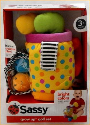 人気ブランドサッシーのゴルフセットです。 お子様は何かとママやパパの真似をしたがるものです。パパがゴルフをするのを見て 自分も真似をしたくなります。自分もパパと同じことが出来ることに大いに満足感を得られます。 自立心やコミニケーションの育成に一役買いますね。 クラブからは音が出ますので、とっても不思議に思えるのです。視覚 聴覚 触覚の育成に一役かいますね。 ボールも付いていますので、本当にゴルフ遊びが出来ます。 お子様は本当にごっこ遊びが好きですので、綺麗な色のサッシーで喜んで遊びだしますよ。 出産祝いやギフトにもどうぞ サイズ20cmx28cm