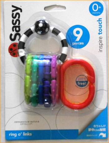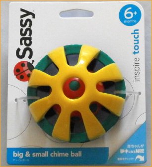 - 3点目は6個のリングセットです。それぞれに切れ目が入っていますので、色んな形に作りかえられます。指先の訓練にも役立ちます。最後にあのチャイムボールです。もうご説明するまでもない大ヒット商品です。