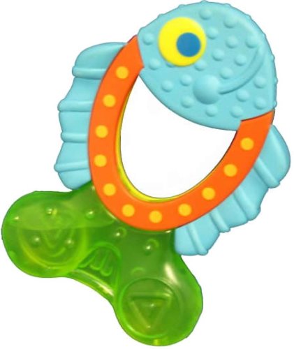 “冷蔵庫で冷たく冷やして使用(冷凍は絶対ダメ)。おさかなのしっぽは、かみかみするのに丁度よい大きさと、カーブがついている。おさかなの胴体は、小さな手がしっかりとにぎれる形。歯がための中は蒸留水。