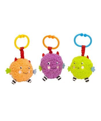 This little "puff ball" is a mischievous one. Attachable to cribs, strollers, car seats and carriers. Motion activated "boing" sound effect! Different textures for baby to explore