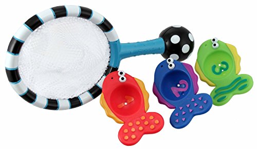 Sassy Catch and Count Net is a developmental learning toy that makes bath time fun. The three fish double as scoopers and strainers, and include numbers to learn counting. Easy to grasp net and fish are sized for baby's hands and help to develop hand and eye coordination. Multiple textures engage baby's sense of touch. And bright contrasting colors aid baby's in visual development. 6 + months