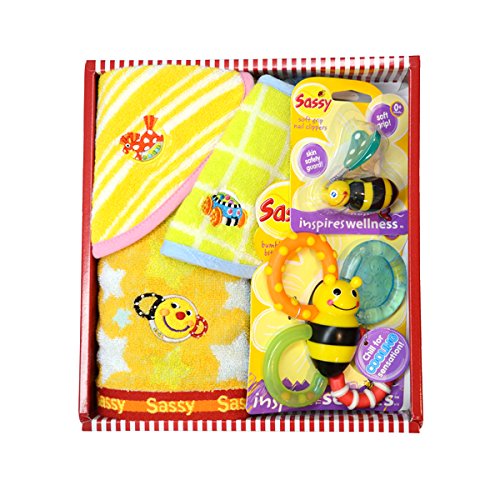 【バンブル・バイツ】 4種類の違う感触が楽しいみつばちラトル。水が入っていて弾力がある羽や透明リングの中でビーズがカラコロする羽など赤ちゃんのカミカミにぴったりのお友だち。冷蔵庫で冷やせば、ムズムズ歯茎の鎮静効果も! 【ソフトネイル・クリッパーズ】 深く切りすぎないための工夫がされており、赤ちゃんの爪切りに慣れないパパやママでも使いやすいデザイン。 【ウォッシュタオル】 こだわりの素材と、安心の柔らかな風合い。長く愛され続けているサッシーのグラフィックがふわふわのタオルになりました。ポップでかわいく、綿100%で安心素材。家族みんなが元気になる、ハッピータイム! 【エアリータオル・ビブ】 吸収性に優れたタオル地のビブは、スナップボタンでサイズ調整が可能です。