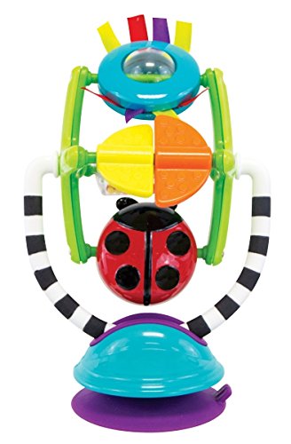 【商品詳細】 ●赤ちゃんの目の前に固定して、くるくる回してあげましょう ●回るたびに愉快な音楽が聞こえるよ♪ てんとうむしさんと一緒に遊ぼう♪ ●「つかむ」動作を覚えたら、トレイから外して自由に遊んで。赤ちゃんにとっての新しい発見がどんどん溢れるおもちゃです♪●固くしぼった濡れ布巾で拭き、完全に乾燥させてください。 ●水洗いしないでください。 【!注意(ちゅうい)】 保護者の方へ 必ずお読みください。 《思わぬ事故のもとになりますので、下記に注意してください》 ●ビニール袋・製品固定用の留め具などの梱包材は、開封後直ちに捨ててください。お子さまが口に入れたり、被って窒息したり、踏んでケガをしたり、滑って転倒するなどのおそれがあります。 ●本製品は必ず保護者の目の届く場所で遊ばせてください。 ●安全のため、破損、変形したおもちゃは、使用しないでください。 ●他のおもちゃとつないだ状態で遊ばせないでください。 ●本来の用途以外には使用しないでください。 ●火気や暖房器具の近くで遊ばせないでください。 【使用上の注意】 ●ぶつけたり、こすったり濡れたままで放置した場合、他のものに色が付着することがありますのでご注意ください。 ●本製品の内蔵電池は交換できません。 ●表面に凸凹のある面や材質によっては吸盤が付かない場合があります。
