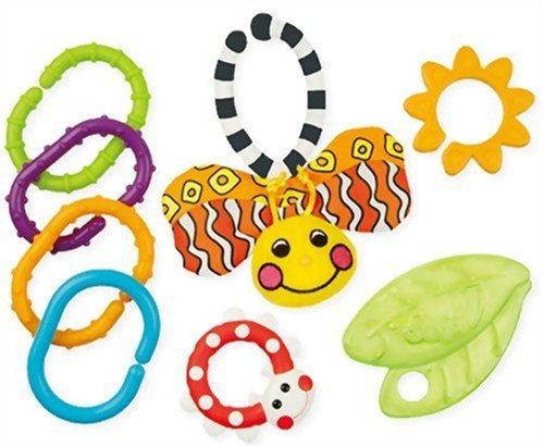 とんぼに、てんとう虫、そしてミツバチの3種類。押すと鳴いたり、カシャカシャ音がしたり、冷やすとクールな歯がためにも(冷凍は厳禁!)。 ベビーカーやバッグにリングで自由にくっつけて。