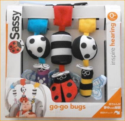 サッシーのゴーゴーバグスベビーカーやベビーベッドに取り付けて。出産祝いやギフトにもどうぞ