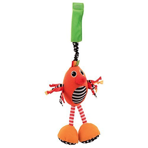 Bright, bold colors engages baby's vision, Straps easily adjust and attach, great for on the go, Bird chimes along as it swings on car seat or carrier, Symmetrical, smiling faces are preferred by young babies, Appropriate for all ages