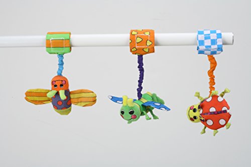 マジックテープつきのお出かけ用おもちゃのセット。ベビーカーやチャイルドシートにつけて、赤ちゃんが触って遊べる。