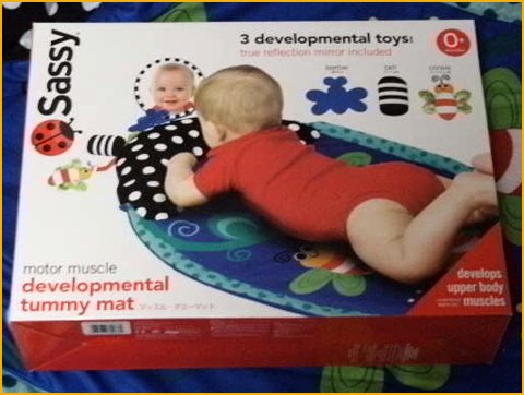赤ちゃんをこのマットにうつ伏せで寝かせてあげると赤ちゃんは鏡が大好き。鏡に映る自分の顔に興味深々白黒の水玉枕が赤ちゃんの姿勢をサポートし、胴の筋力アップに役立ちます白黒枕の上に付いている白黒のベルは、ガラガラと音がして、視覚聴覚を刺激します。柔らかいEVA製のチョウチョは歯固めとしても使えます。赤白のチョウチョはガシャガシャ音が出て楽しく遊べます89cmX55cmサイズのマットは洗濯機で洗えます