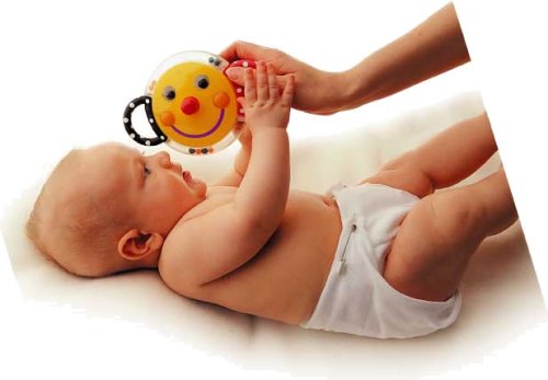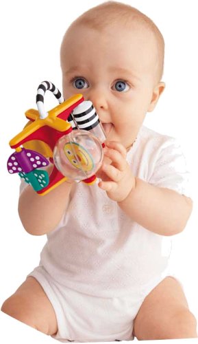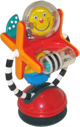 4種のアクティビティーを持つガラガラの底に吸盤が付いて、テーブルにくっつけた状態で遊べる。つかむ・握る・回すという運動で、色・形・音の違いまで学習できる。赤ちゃんの手首の力を強くする、程よい重さのおもちゃ。