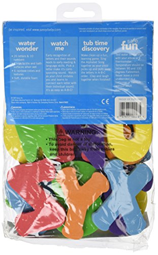 26個のアルファベット(A~Z)と10個の数字(0~9)のセット。明るいレインボーカラーの数字とアルファベットは、水に濡らすとタイルやバスタブにくっつきます。柔らかい素材なので、安心して遊べます。文字や数字の形をバスタイムに楽しく学びませんか?グッドトイブランドとして世界で人気のSassyが贈る、赤ちゃんの「遊び」と「学び」を最大限に引き出す知育玩具。そのカラフルな色合いやかわいらしいモチーフは、ギフトにもぴったりです。