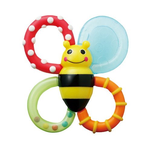 - ③Sassy バンブル・バイツ:違う触感が楽しい、みつばちラトル。 ひとつの羽は水が入っていて弾力があり、ひとつは透明リングの中でビーズがカラコロ。 (0ヶ月~)