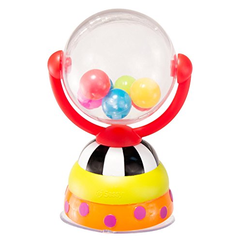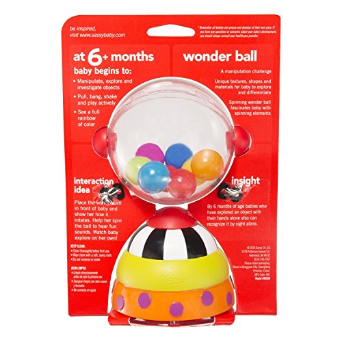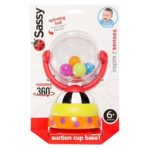 The Sassy Wonder Ball is a 360 degree spinning ball that is sure to capture baby's attention. Featuring brightly colored balls that roll around when baby spins the ball, the Wonder Ball can be attached to a high chair tray, or the ball can be removed from the base for on-the-go play.