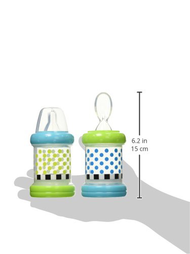 Set of 2 - 4oz Nursery Bottles;One bottle with spoon, one bottle with nipple;Transitions baby from breast milk or formula to solid food;Appropriate for 6 plus Months;BPA Free