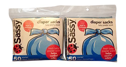 100 disposable diaper sacks with tie handles;Baby powder scent keeps odor under control;Seal in wetness and keep your house smelling great