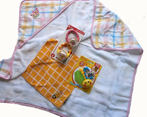 - 高級タオル素材使用のフード付きバスタオルや歯固め ミニタオルが入っています。贈り物には最適の商品ですね