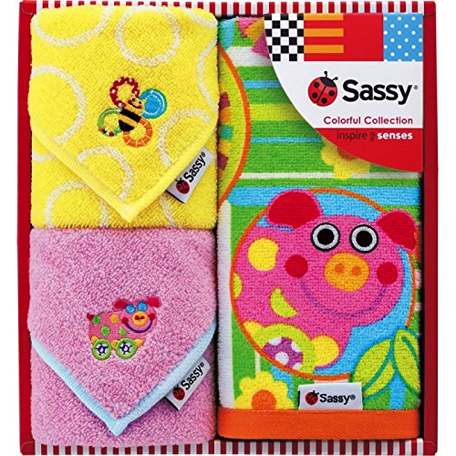 ウォッシュタオル & ミニタオル2P B/ピンク&イエロー