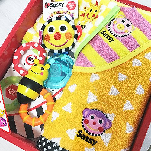Sassyの大人気商品を「ギュっ」と集めて出産祝いのセットにしました。化粧箱入りなので、そのままプレゼントがOK!はじめてのSassyとして、内容がぎっしり詰まったセットです。