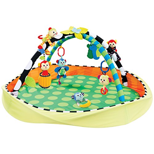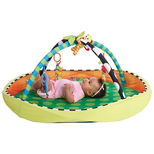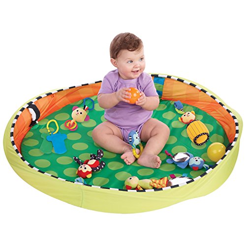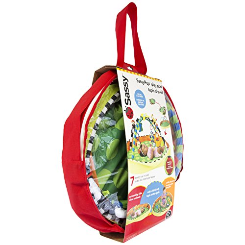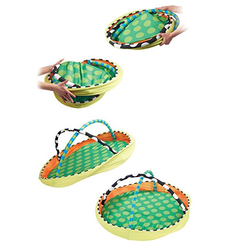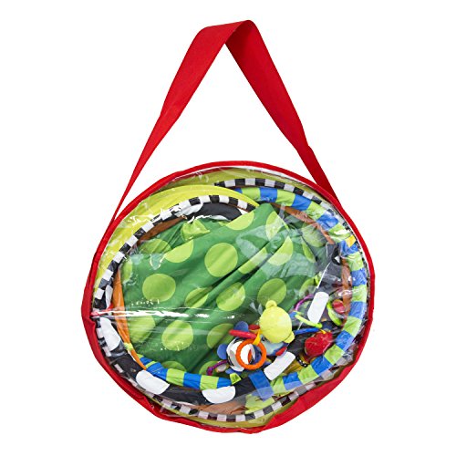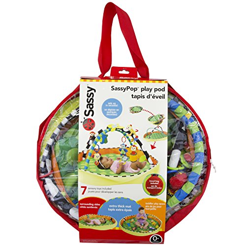 The SassyPop Play Pod sets up in seconds, perfect for in home or travel;Play and Put Away;Grows with baby! Use with toy arches for newborn baby and remove arches for sitting baby to play with toys and balls;Convenient storage and carry bag included;Includes Sassy Developmental toys to Inspire Baby's Senses
