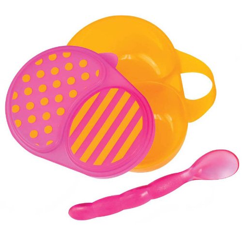 Ergonomically designed spoon and bowl for better grip;Dual compartments in the bowl keep two different foods separate from each other;Snap-on lid for storing food;Ideal for carrying food outdoors;Makes mealtime easy