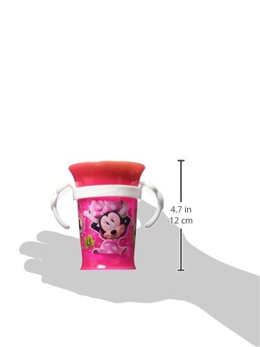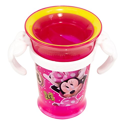 Cute Minnie Mouse theme with easy to grip handles that can be removed;Revolutionary 360-degree design, sip anywhere around the rim;Silicone valve for spill-free drinking helps children transition to an open cup;Pediatric dentist preferred over spouted cup;Appropriate for 9+ Months, top rack dishwasher safe & BPA Free