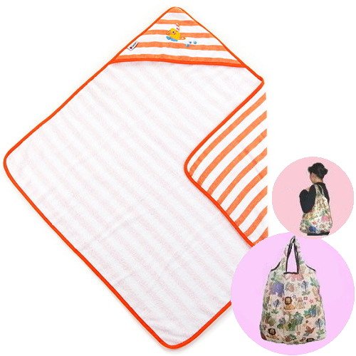 Sassyサッシー さらふわガーゼ・フード付おくるみ(オレンジ)/袋入 ★ファッションバッグ付き