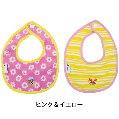 (サッシー)SASSY エアリー タオル・ビブ 2枚セット よだれかけ スタイ 2段階調節可能 ピンク&イエロー