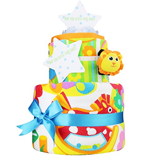 - Sassyタオルやおもちゃがついた大人気おむつケーキ