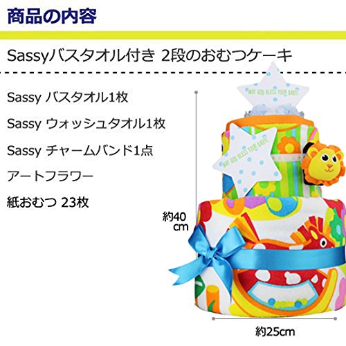 - Sassyタオルやおもちゃがついた大人気おむつケーキ