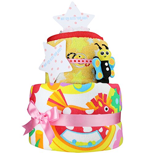 - Sassyタオルやおもちゃがついた大人気おむつケーキ