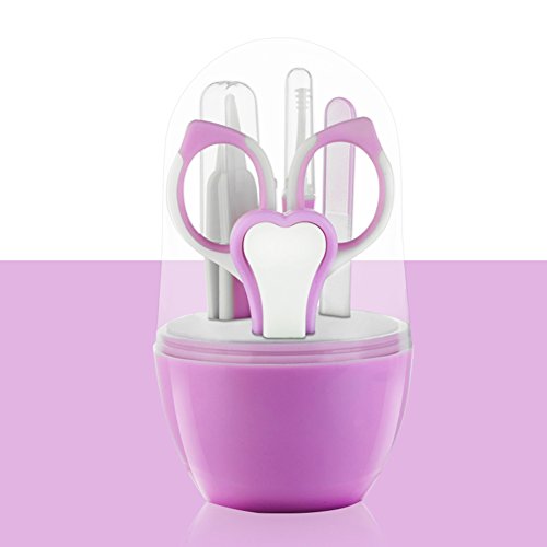 ツメキリ ベビー用 SAVOKI ハサミ 爪やすり 鼻用ピンセット 耳掻き 新生児用 幼児赤ちゃん 5個セット パープル