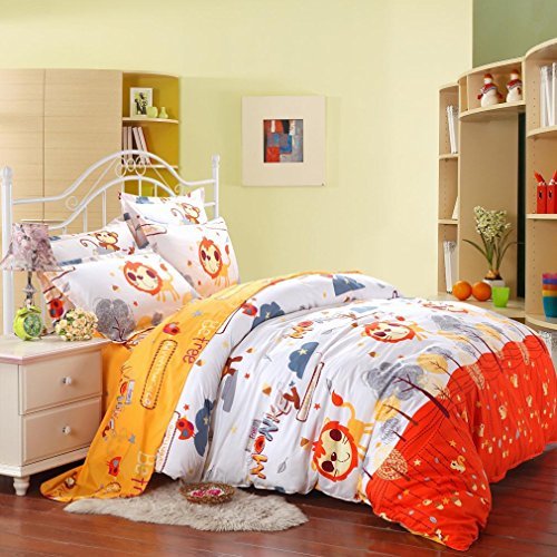 SAYM Home Bedding Sets Elegant Rural Style Print Kids Set For Lovely Teen Girls 100% Polyester Fiber School Duvet Cover,Flat Sheet,Shams Set 4Pieces Lion Full [並行輸入品]