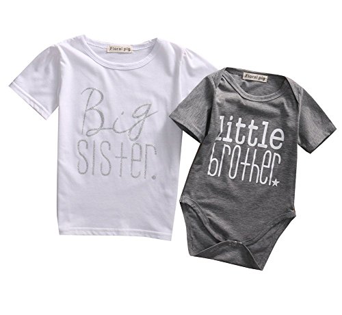 ベビー男の子Brotherレタープリントロンパース子供用Sister TシャツMatching服服装 カラー: グレー
