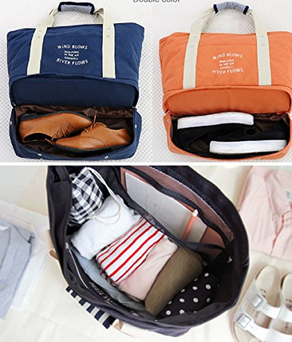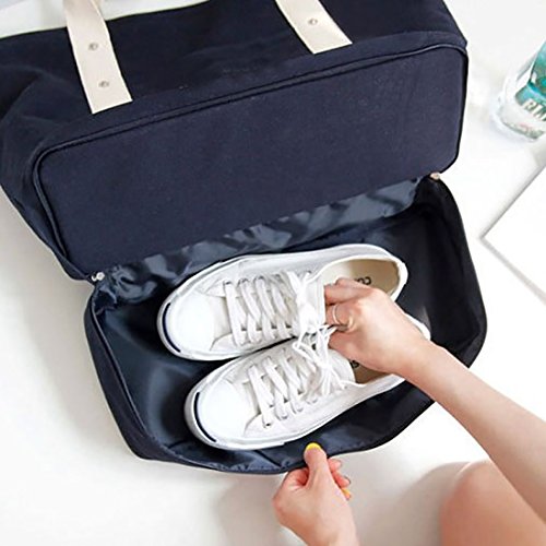 SBOYS(エスボーイズ) マザーズバッグ 防水 二層式 旅行バッグ 靴収納 多機能 特大サイズ トートバッグ 軽量 スポーツバッグ 機内 持ち込み (ダークブルー)