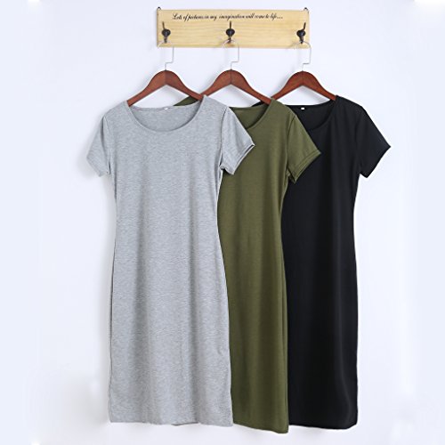 scastoeレディース夏カジュアルドレスソリッドカラー半袖Tシャツドレス – Army Green S