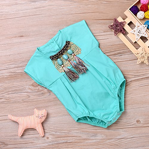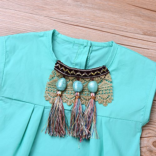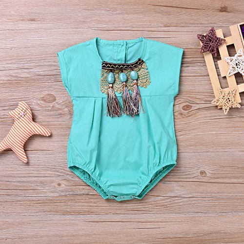 SCFLIFE赤ちゃん新生児幼児少女ソリッド半袖タッセルロンパー (100cm)