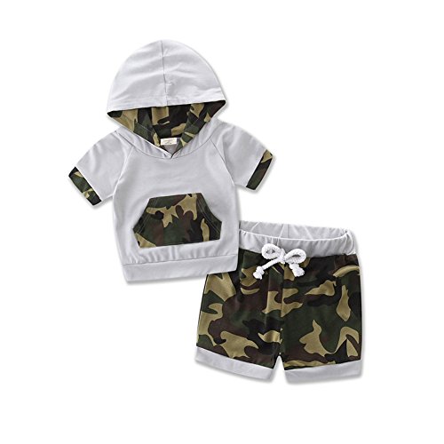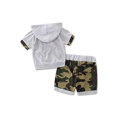 SCFLIFE 2PCS赤ちゃん半袖フード付きTシャツカモフラージュショートパンツユニセックス子供服セット (100cm)