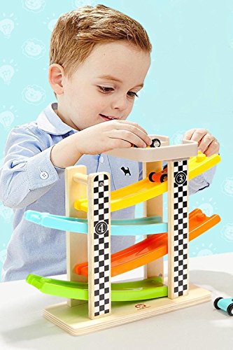 - 車が4段のレールを右へ左へと順番に降りていくシンプルな動きですが、これが子どもには楽しくてたまらない!きっと同じことを何度も何度も繰りかえすことでしょう。